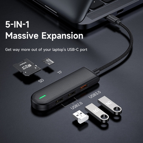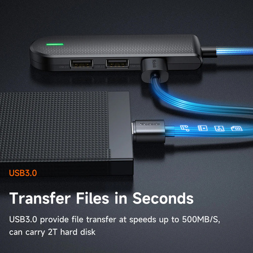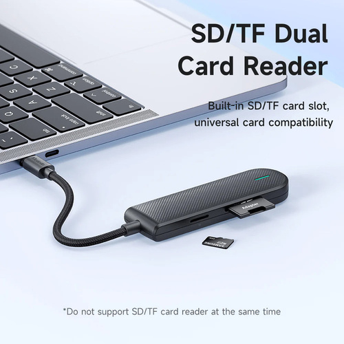 هاب 5 پورت USB-C مک دودو مدل HU-1430 به کاربر یک پورت USB3.0 که 9 پین،دو پورت USB2.0 و دو پورت کارت خوان SD,TF ،را ارائه می دهد.این هاب قابلیت اتصال به پورت تایپ سی (usb-c) موبایل ،تبلت،لپ تاپ و همچنین پورت USB انواع کامپیوتر و لپ تاپ را دارا می باشد.سرعت انتقال اطلاعات در پورت USB3.0 مبدل حداکثر 5Gbps است.که با انواع دستگاههای USB2.0 نیز سازگاراست. از قابلیت Hot-Swapping و Plug and Play پشتیبانی میکند. دارای سیستم محافظت در برابر نوسانات برق یعنی OVP , OCP و SCP میباشد، بدین معنا که در اثر نوسانات احتمالی برق،تجهیزات متصل به این مبدل دچار آسیب نمیشوند. این هاب با سیستم عاملهای ویندوز، مک واندروید سازگار است(نیاز به نصب نرم افزار جهت شناسایی نمی باشد) و مورد تایید استانداردهای FCC , CE , RoHS می باشد. برای مصارفی مانند استفاده همزمان از فلش، موس و کیبورد، گوشی، پرینتر و اسکنر و یک هارد دیسک اکسترنال و مموری کارت و... کاملا ایدهآل است.جنس بدنه این هاب از آلیاژ ABS جهت انتقال دمای بهتر میباشد.این هاب قابلیت اتصال به انواع موبایل و تبلت و لپ تاپ دارای پورت تایپ سی را دارد.امکان استفاده دو پورت کارت خوان همزمان وجود ندارد.